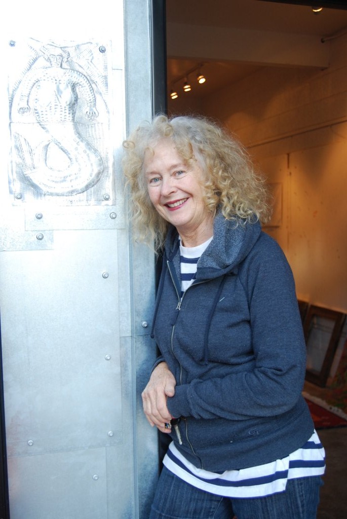 However, while recently visiting Kendrick at her Mission Hills’ office and studio, which is a renovated machine shop, I learned and saw some of her recent work, including a traveling show, titled, “KA-POW!” It is a multi-faceted installation inspired by street art and graffiti art and the images are painted, drawn, stenciled, glittered, inked and collaged. According to her website, each symbol or image has a specific meaning: global, political, cultural, historic and personal.