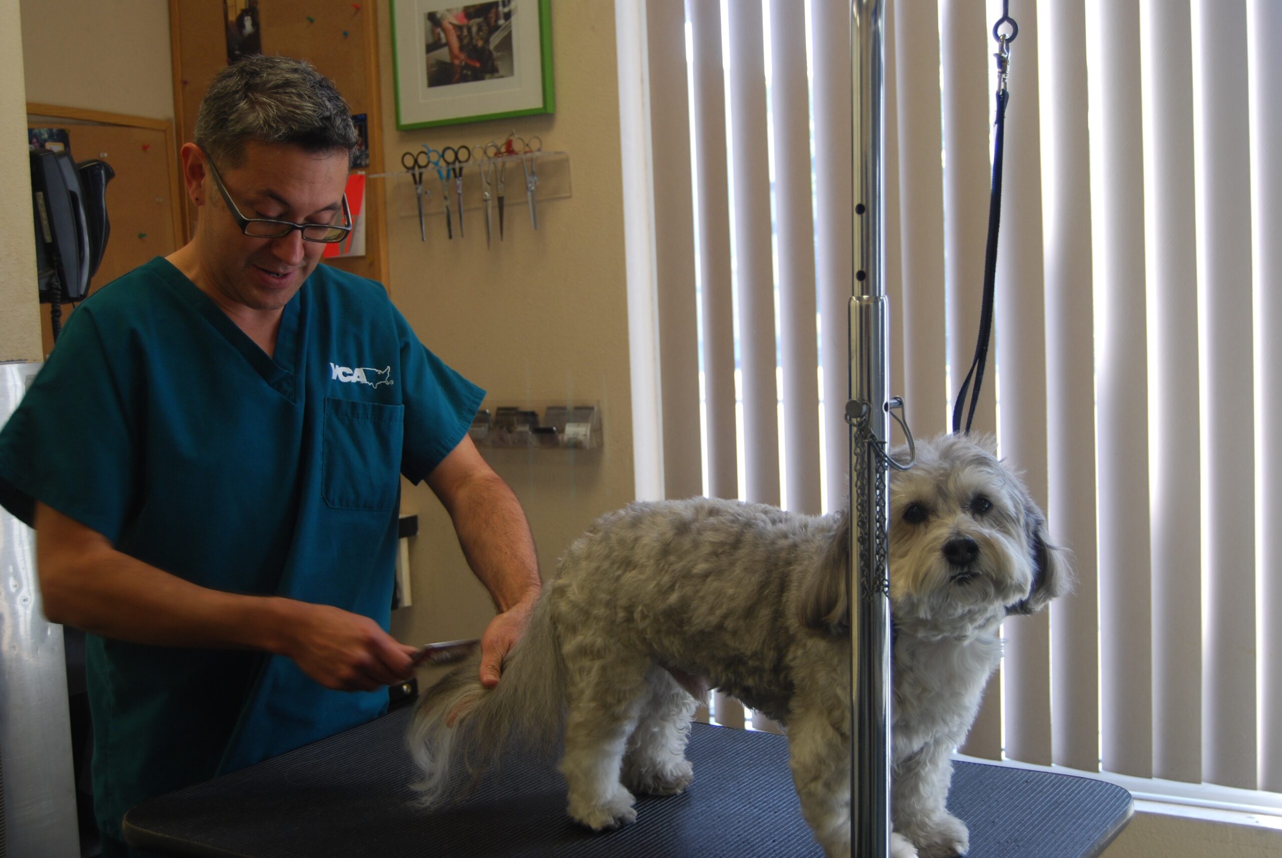 It’s always a pleasure to meet someone who is passionate about his job and enjoys going to work every day. That’s the case with Salvador Gomez, the head groomer at VCA Hillcrest Animal Hospital, located at 246 West Washington Street. I recently got the opportunity to visit with him and meet some of his canine clients. It was a fun experience because of his attitude and energy.