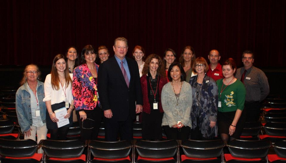 Former Vice President Al Gore is with members of the Warwick’s crew and San Diego Law Library staff.