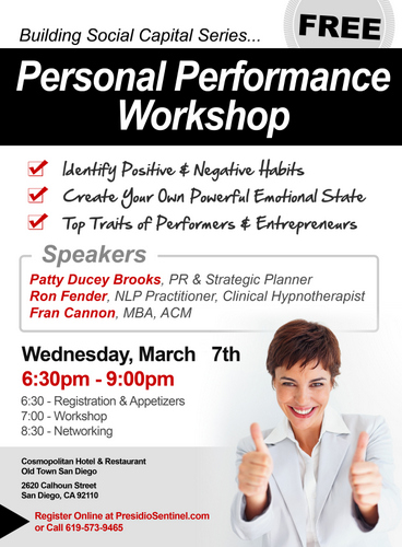 FREE! Personal Performance Workshop 3.7.2012 @ The Old Town Cosmopolitan