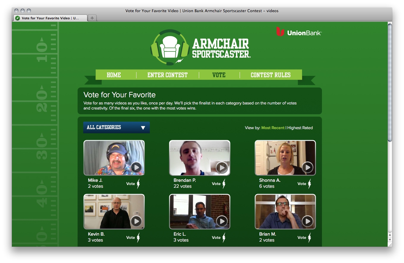The promotional and advertising program was created by San Francisco based Eleven Inc., advertising agency of record for Union Bank. For official rules and to enter the contest, visit www.armchairsportscaster.com or head to your nearest Union Bank branch for more information.