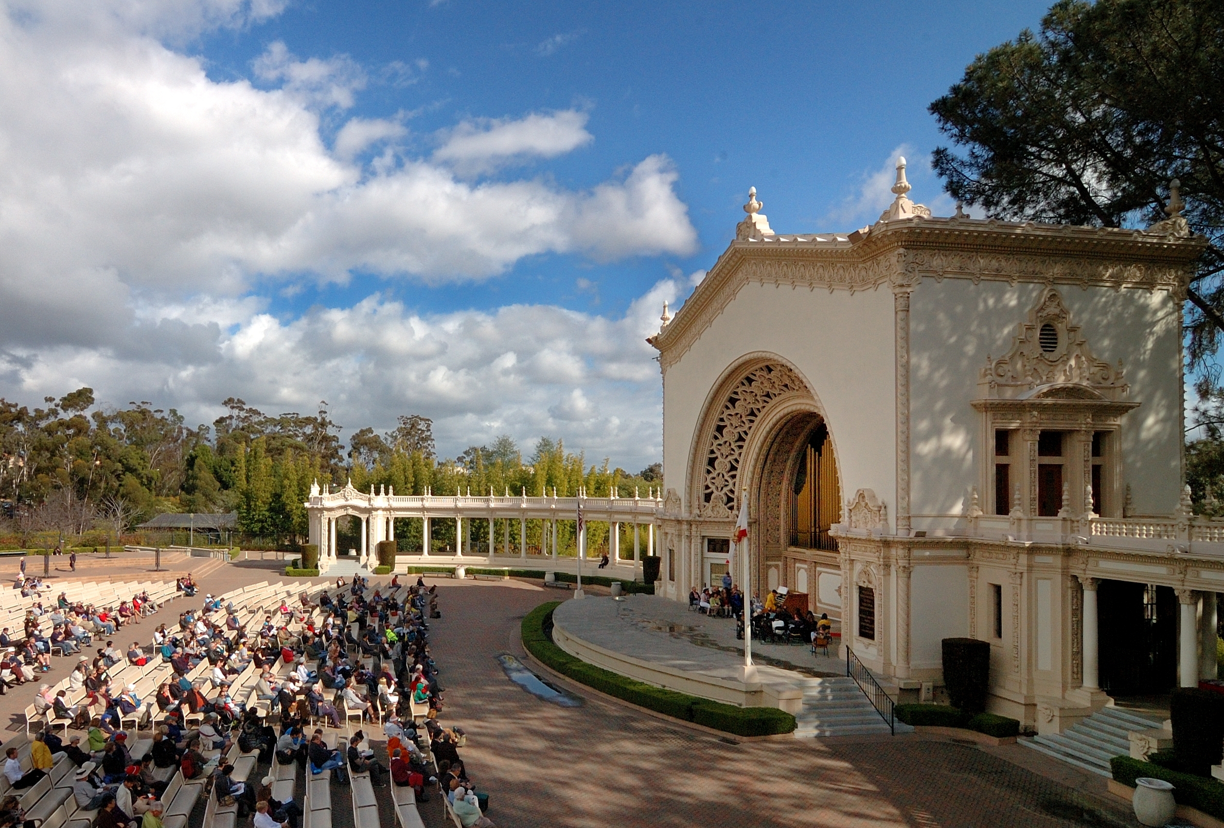 The Spreckels Organ and Pavilion were a gift from John D. and Adolf Spreckels of the Spreckels sugar family, and were dedicated and first played on December 31, 1914. Photo courtesy of Bob Lang.