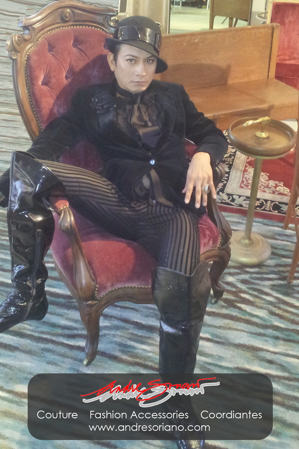 AS: In San Francisco, I sell in Paulo Alto…where I have accessories. In Downtown San Diego, I have a few pieces in the East Village at Dianne O. Atelier. (Soriano pulls out a hard-stock bio and print of Atelier’s store).You can order and view online at andresoriano.com and dianneo.com.