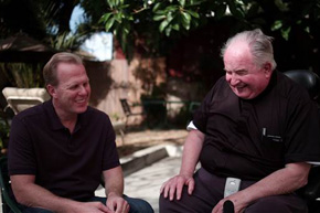 Councilmember Kevin Faulconer and Father Joe Carroll (right) share positive thoughts about the future of San Diego.
