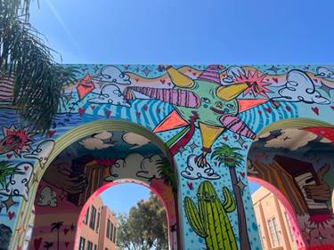 Since 2000, Arts District Liberty Station has been a leading force in San Diego’s arts and culture scene, fostering creativity and providing a welcoming space for artists to explore and showcase their work. In 2017, the organization launched Installations at the Station, a program designed to celebrate and highlight the vibrant, transborder visual arts community by commissioning both local San Diego and Northern Baja artists—most recently including PANCA, Kaori Fukuyama, Scarlett Baily, and Kline Swonger—to create lasting works that reflect the area’s cultural diversity. These installations, along with many other iconic artworks on display throughout Arts District, are now featured in the online Open-Air Gallery.
