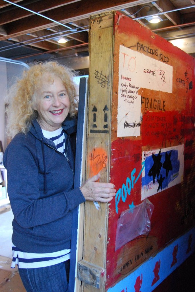 However, while recently visiting Kendrick at her Mission Hills’ office and studio, which is a renovated machine shop, I learned and saw some of her recent work, including a traveling show, titled, “KA-POW!” It is a multi-faceted installation inspired by street art and graffiti art and the images are painted, drawn, stenciled, glittered, inked and collaged. According to her website, each symbol or image has a specific meaning: global, political, cultural, historic and personal.