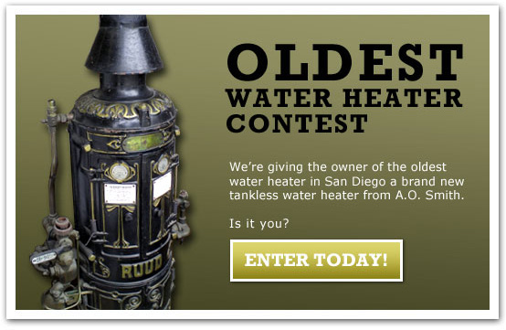 Powers Plumbing is looking for the oldest water heater in the San Diego area and will give the winner a new A.O.Smith tankless water heater free in an effort to highlight the potential for energy savings when upgrading this equipment. Powers Plumbing wants to find the oldest water heater in San Diego and replace it with a free tankless water heater to show homeowners how much energy savings is possible from this upgrade.