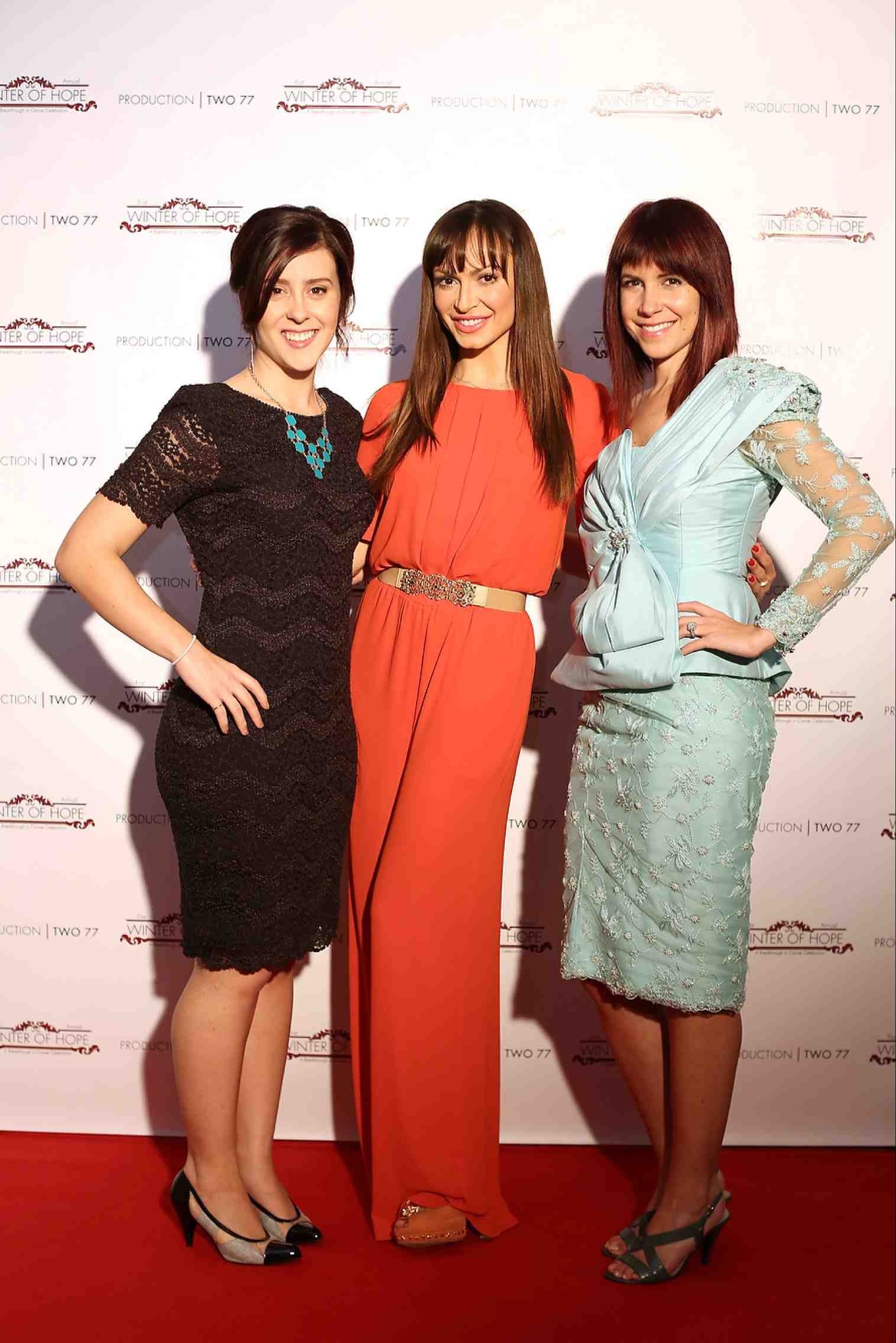 Left to right are hair stylist Brittany Moore, “Dancing with the Stars” Karina Smirnoff and Stylist Aubree Lynn wearing Marcus by Boutique DeMarcus. Photo provided by Robert Benson/Getty Images.