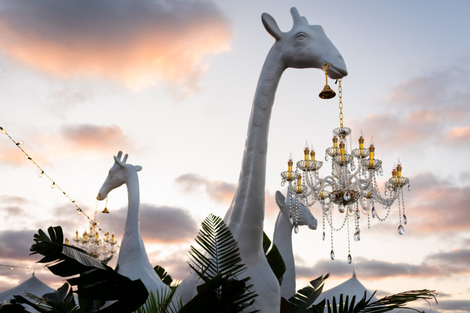Upon entering through weathered barn doors, guests will find themselves transported to an immersive realm where rustic nostalgia meets opulent grandeur. Plush velvets, shimmering metallics, antique saddles reimagined as art, and vintage car mascots reborn as whimsical carousel wonders will set the scene. Towering oak trees and elegant lounges frame the evening, while artisanal cocktails are crafted from imaginative, restoration-inspired installations. Adding to the enchantment, guests will step into a scene of rustic elegance reimagined, where miniature donkeys, Highland cows, and llamas adorned with floral garlands and velvet halters create an unforgettable photo opportunity—blending barnyard whimsy with extravagant charm.